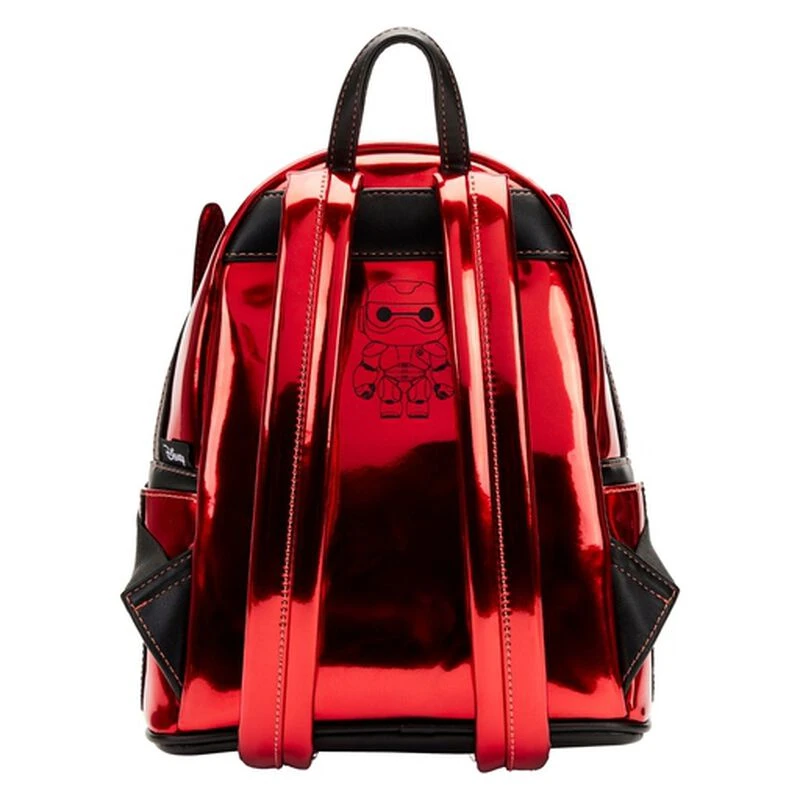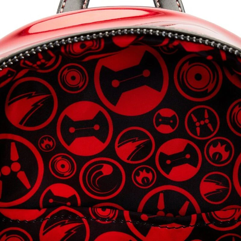 The D23 exclusive Funko Pop! by Loungefly Big Hero 6 Baymax Battle Mode Cosplay Mini Backpack is made of holographic vegan leather (polyurethane). Bag has adjustable shoulder straps and sturdy metal hardware. Additional features include applique, debossed, and printed details. Take note of the coordinating inside lining.