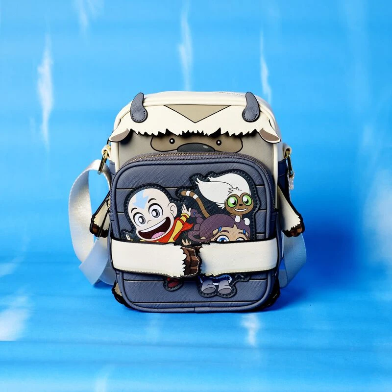 The Loungefly Avatar: The Last Airbender Appa CROSSBUDIES Bag is made of vegan leather (polyurethane). Bag has adjustable shoulder strap (detachable) and sturdy metal hardware. Additional features include applique and printed details. Take note of the coordinating inside lining.