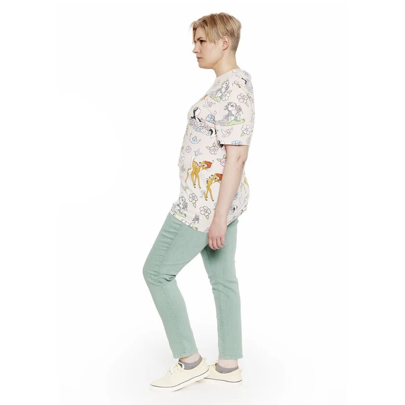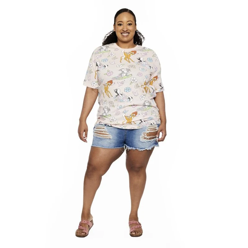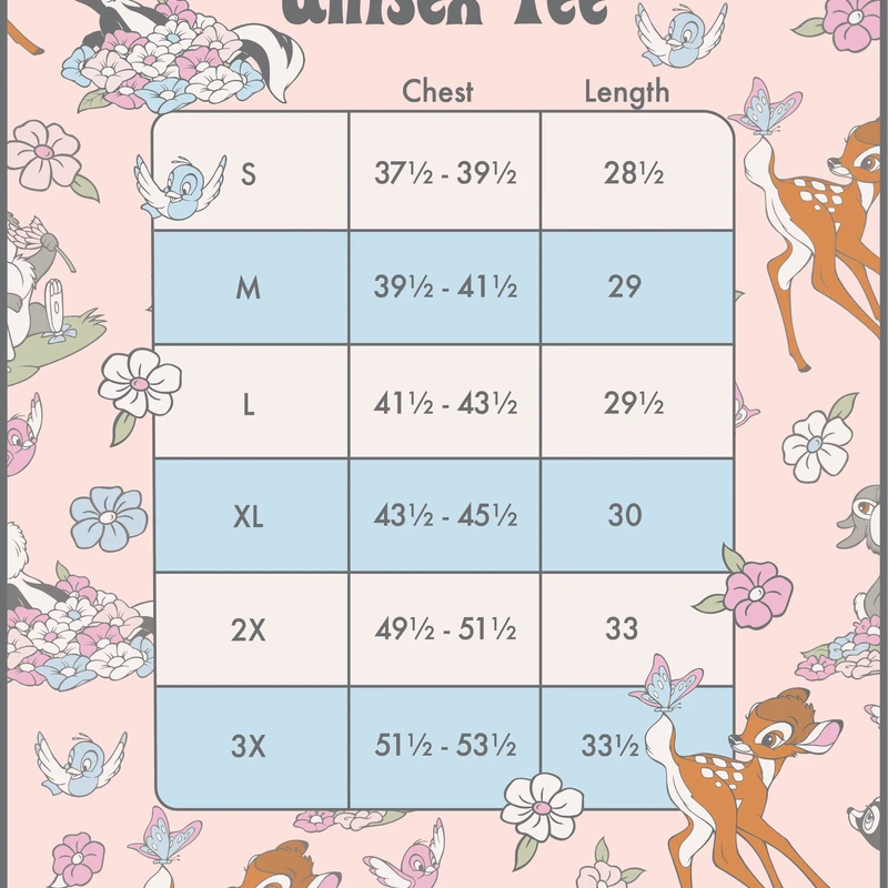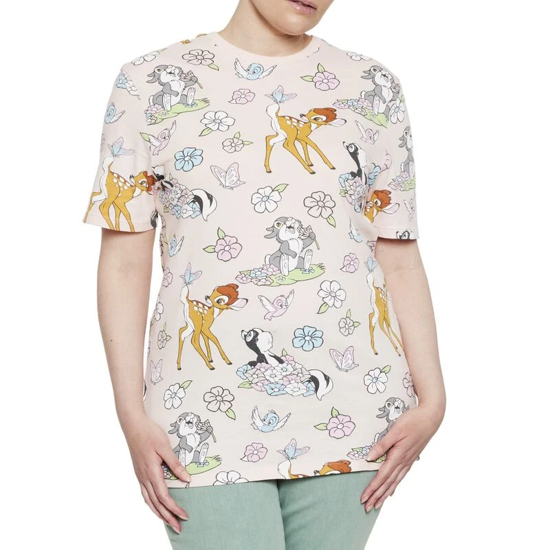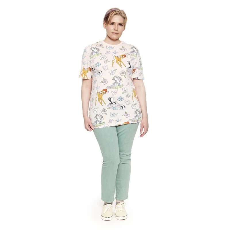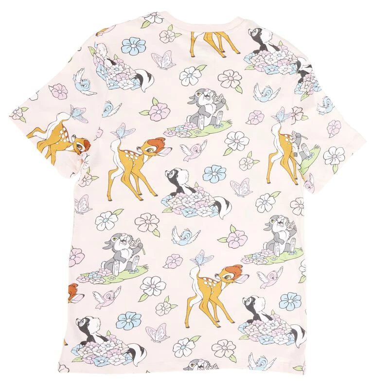 This Loungefly Bambi Springtime Tee is made of a super soft cotton jersey (100% cotton) and features an all-over-print. Please note: Patterns will vary with all-over-print styles. Not every piece will look identical nor will every piece be an exact match as to what is pictured online.