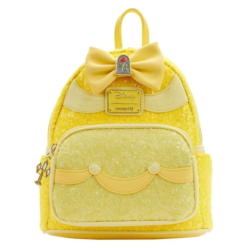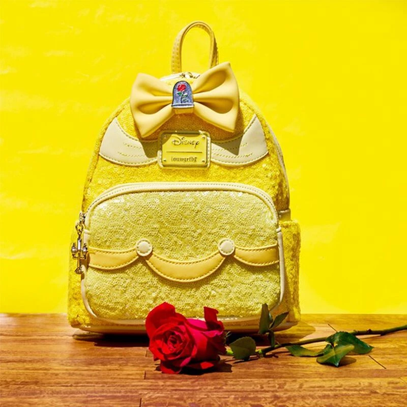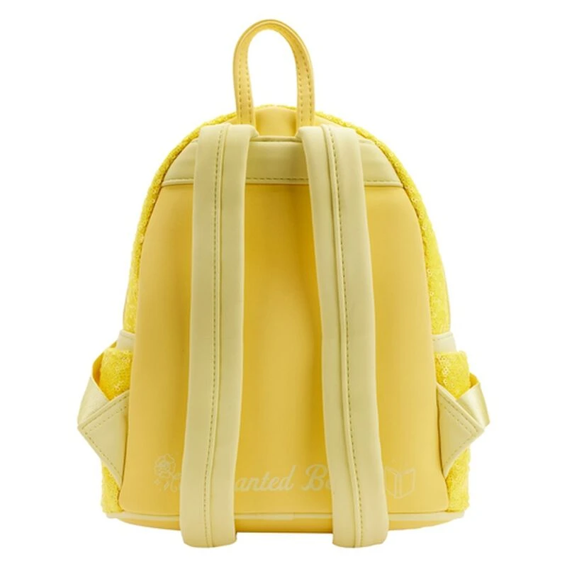 An enchanting journey awaits you with this exclusive Loungefly Disney Beauty and the Beast Belle Sequin Mini Backpack! Elegant details in sequins of gold bring Belle’s signature ballgown-look to life on this backpack. A 3D bow holds the Enchanted Rose in the middle, symbolizing the promise of a curse that can be broken, if beauty is found on the inside. Lumiere, on the front zipped pocket, offers illuminating service as an enamel zipper charm. On the back, you’ll find the words “Enchanting Beauty” in graceful lettering. It’s the perfect accessory for the ultimate Disney occasion—or for turning everyday outings into magical adventures. Act fast to collect this exclusive accessory; supplies are limited.
