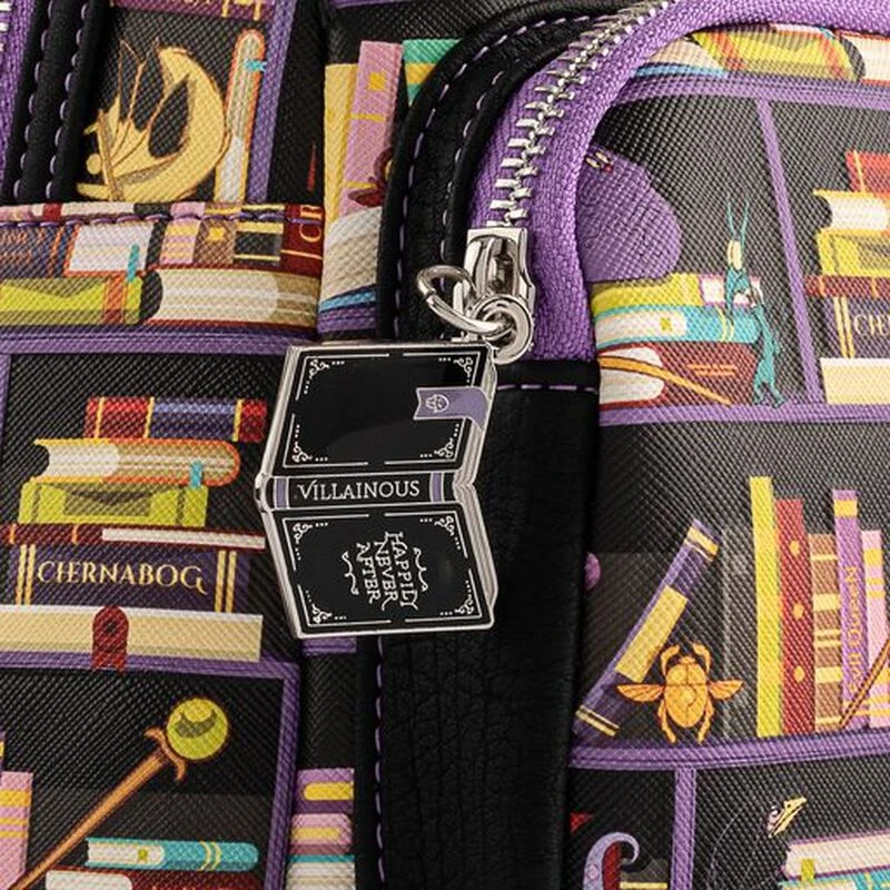 Pay homage to your favorite Disney villains by carrying a bookish bag with subtle hints referencing the various villains. The Loungefly Disney Villains Books Mini Backpack has references to Hades, Maleficent, Cernabog, Ursula, Jafar, Captain Hook, and more hidden within its print. This bag is great for a villains-themed outfit or for everyday use as you carry out your plans.
