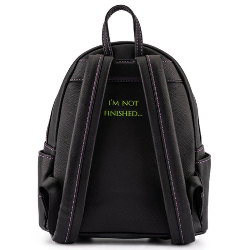 Edward Scissorhands seems to have taken his lawncare job very seriously on this Loungefly Edward Scissorhands Topiaries Mini Backpack. In the foreground of the garden you’ll find Edward standing next to his wonderfully creative dinosaur hedge. The hedges are even textured with soft chenille fabric. Down the garden path you’ll see more masterfully manicured hedges among many beautiful flowers. This design is sure to delight any who encounter it!Â