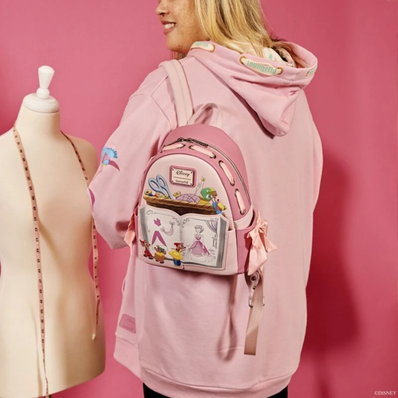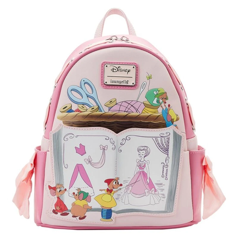 We can do it! Help make a dress fit for a royal ball with this Exclusive Loungefly Cinderella Mice Dressmakers Mini Backpack. On the front of this crafty accessory, Cinderella’s small companions make plans to alter a dress. Jaq and Gus stand in front of a book, concealing the bag’s front zipper pocket. Up above, ribbon weaves in and out of eyelets while bows adorn the side pockets. On the back, mousey seamstresses mark up fabric. This charming mini backpack is tailored to perfection and provides a fashionable way for Disney fans to keep one of their favorite movies close. Act fast to collect; supplies are limited.