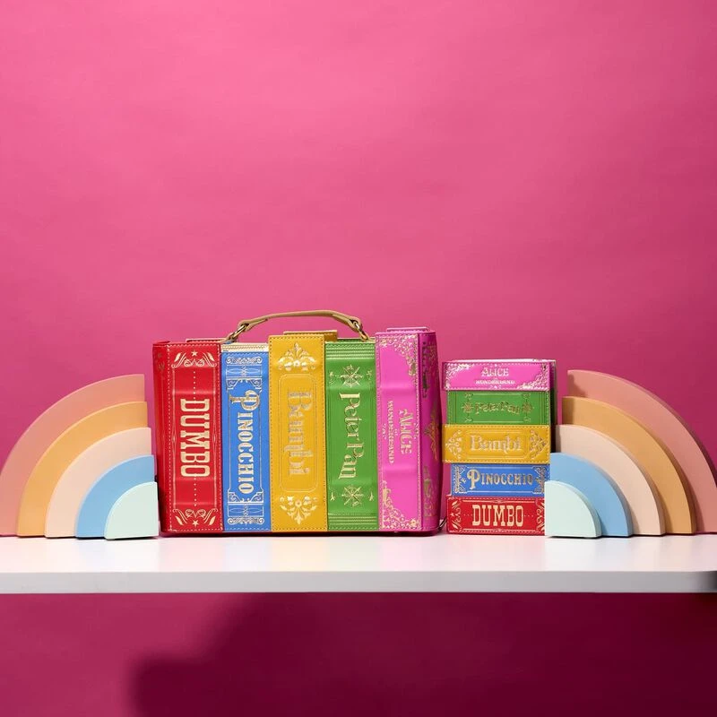 Book it to the library in style! Check out our exclusive Stitch Shoppe Disney Classic Books Crossbody Bag, which is filled with fun, unique details. This figural bag is designed to look like a stack of Disney books—their spines pointing outward as if resting on a shelf. The titles, in metallic printing on embossed padded ridges, include Dumbo, Pinocchio, Bambi, Peter Pan, and Alice in Wonderland. Metal snaps on the “books” from each side view, allow for access to the zipper compartment that holds valuables secure. Inside the flap of Dumbo, you’ll find a library card for the “Castle Public Library,” with the names of some memorable characters who have checked out this book before. The back view displays the reverse side of the closed stack of books, their pages lined up vertically. It’s the perfect accessory for dashing off to a book club or café gathering—or for turning everyday outings into enchanting adventures. Act fast to collect; supplies are limited.