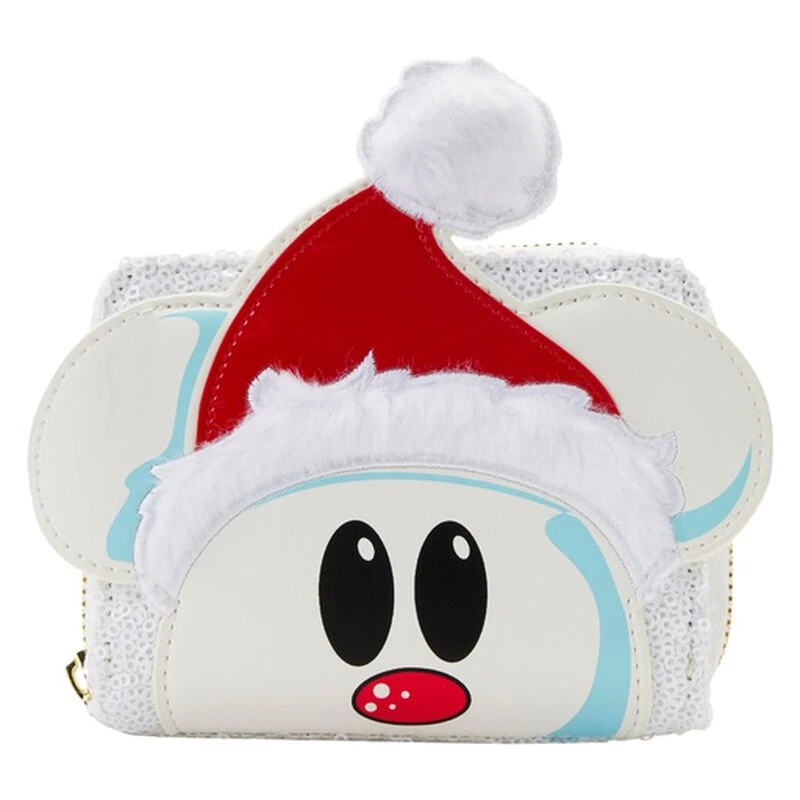 It’s snow much fun to get into the spirit of the season with this exclusive Loungefly Disney Sequin Snowman Mickey Mouse Zip Around Wallet. On the front of this shimmering, white sequin studded wallet, you’ll find Mickey Mouse, in the shape of a snowmouse—with applique details that bring his ears and a bright red Santa hat to life, popping up over the top of the wallet. On the inside, you’ll find 4 slots for holding cards, and 1 clear slot for holding your ID. It’s the perfect accessory for a special Disney trip—or for turning everyday outings into bright and merry adventures. Act fast to collect this exclusive accessory; supplies are limited.
