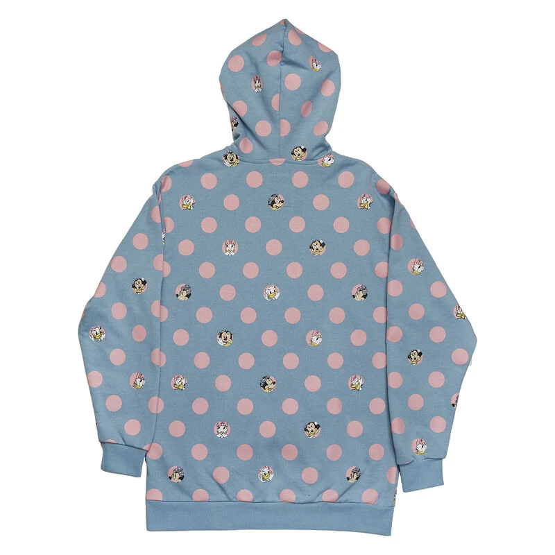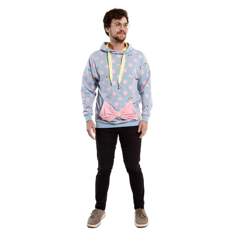 We’ve just spotted a totally adorable hoodie! Our Loungefly Disney Minnie Mouse Dots French Terry Unisex Hoodie celebrates Minnie’s iconic 90s look. This comfy blue hoodie is covered in Minnie Mouse’s signature dots, but with a pastel twist. Both Daisy Duck and Minnie Mouse make star appearances in the dots as well. The front pocket is a 3D pink bow, and yellow lanyard drawstring cords add a delightful contrast. Pink bows, dotting the lining of the hoodie, add a classic Minnie Mouse touch. Wherever your adventures take you, this hoodie is spot-on and full of character.