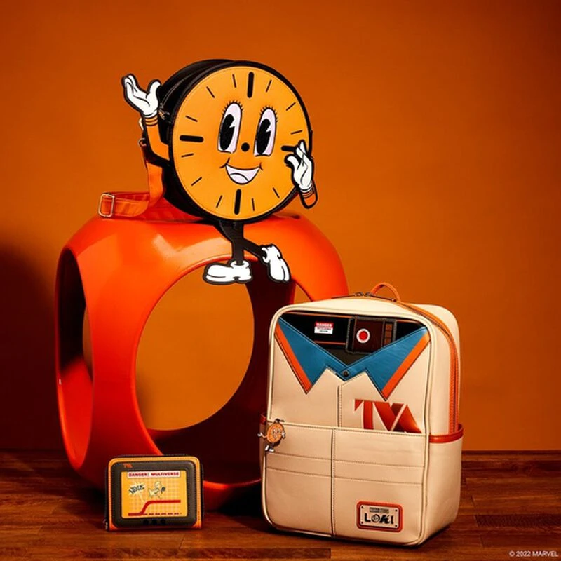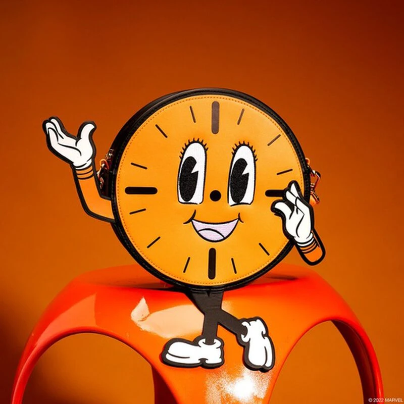 “Hey, y’all!” The Loungefly Loki TVA Miss Minutes Crossbody Bag is here to catch you up on the most recent happenings at the Time Variance Authority. Taking the shape of the TVA’s animated mascot, the front of this crossbody bag features Miss Minutes’ orange clockface. Embroidered applique forms her arms and legs, and her cheery catchphrase appears on the bag’s back. This timeless accessory is sure to keep any outfit in line and has plenty of room to store all your time-travel essentials.
