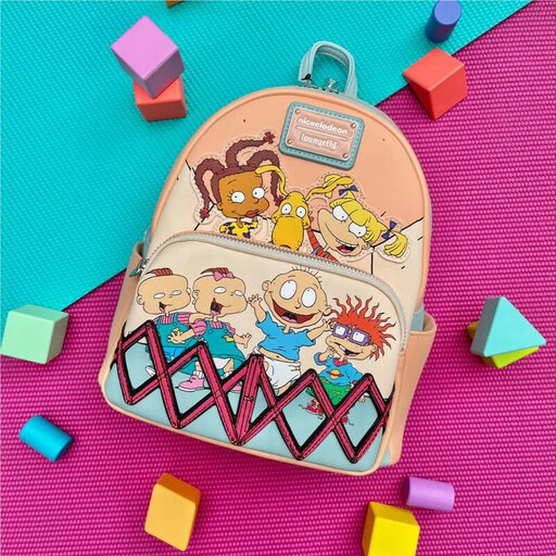 Celebrate the 30th Anniversary of Rugrats with Loungefly’s Rugrats 30th Anniversary Mini Backpack. Tommy, Chuckie, Lillian, and Phillip are in the playpen on the front pocket, while Angelica and Susie stand above with Spike the dog. It’s a great first step in incorporating your favorite 90s cartoons into your everyday wardrobe.