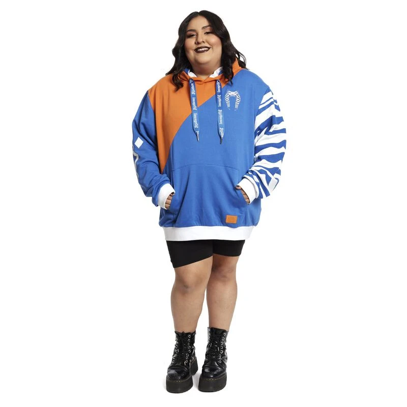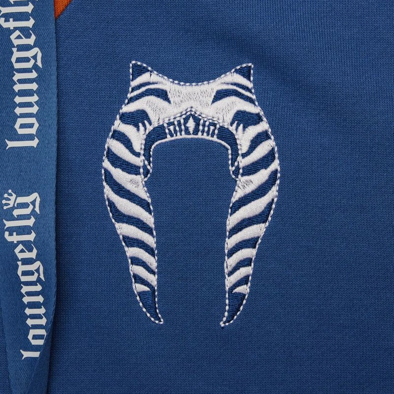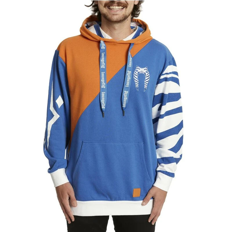 Walk in the path of a Padawan-turned-Jedi with this Loungefly Star Wars™ Ahsoka Tano Hoodie! Powerful, inventive, and courageous, Ahsoka Tano channels inspiration. Join her on her journeys. The sleeves and the lining of the hood feature dark blue coloring and stripes, inspired by Ahsoka’s lekku. A diagonal orange section down the front, and on the hood, are in keeping with her Togruta origins. The hood bears her facial markings. This dynamic hoodie is perfect for taking on challenging missions in a far-away galaxy—or for cozying up on the couch after a day of adventures.