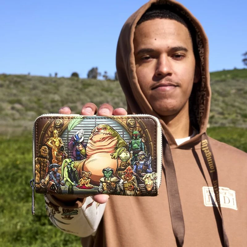 Brave the terrors of Jabba’s Palace and carry your bounty out with the Loungefly Star Wars™: Return Of The Jedi™ Jabba’s Palace Zip Around Wallet. This 40th Anniversary edition design captures an iconic cinematic scene in the third film in the Skywalker saga. On the front, in printed and debossed detail, is Jabba the Hutt along with his entourage. Turn the wallet around to find two of Jabba’s guards at the gate of the Rancor pit. This galactic accessory makes a stellar addition to any outfit and is sure to elevate any Star Wars™ collection.