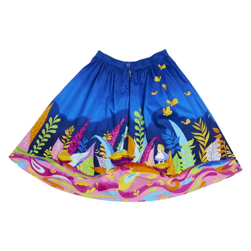 Feeling a little small? Inch your way through Wonderland’s psychedelic mushroom grove with the Stitch Shoppe Alice in Wonderland Caterpillar Dream “Sandy” Skirt. This pattern reimagines a beloved scene from Disney’s animated classic, where Alice comes face to face with the ill-tempered Caterpillar. As brightly colored leaves grow tall around them, Bread-and-Butterflies flutter near the clouds. Look closely and you may even find the Cheshire Cat smiling in the background.