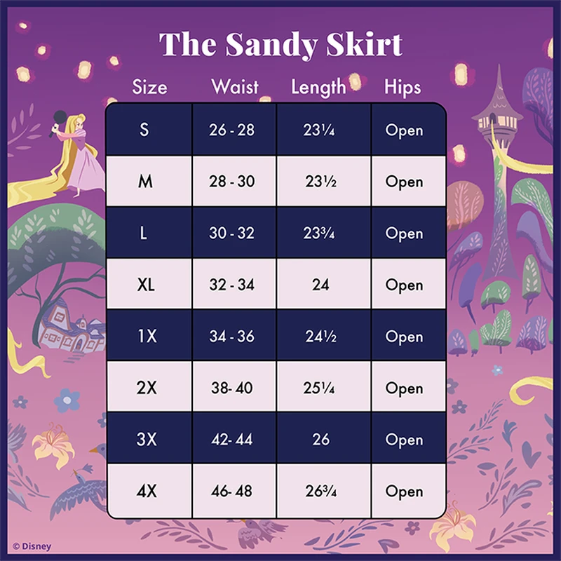 This Sandy-style skirt is made of super soft stretch material (98% cotton/2% elastane). Hitting just at the knee on most, the Disney Stitch Shoppe by Loungefly Story of Rapunzel Sandy Skirt features a zipper back, pockets, elastic waistband (for extra comfort), and a button closure. This versatile skirt can easily be dressed up or down.