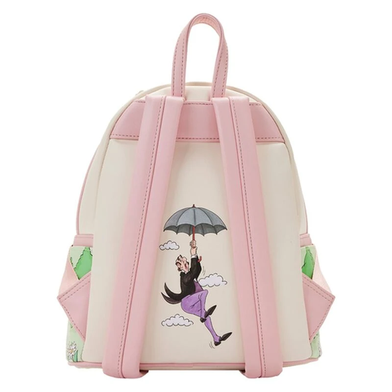 Strut your stuff down the catwalk! Marie is dressed in the finest French fashion as she wears a sparkly bow on the front of the Loungefly The Aristocats Marie House Mini Backpack. Up above, Duchess and Thomas O’Malley sit on the steps of Madame Bonfamille’s mansion. Turn the bag around to see Edgar the butler swoop in on a bumbershoot. This darling accessory is the cat’s meow and makes a trendy addition to any outfit.