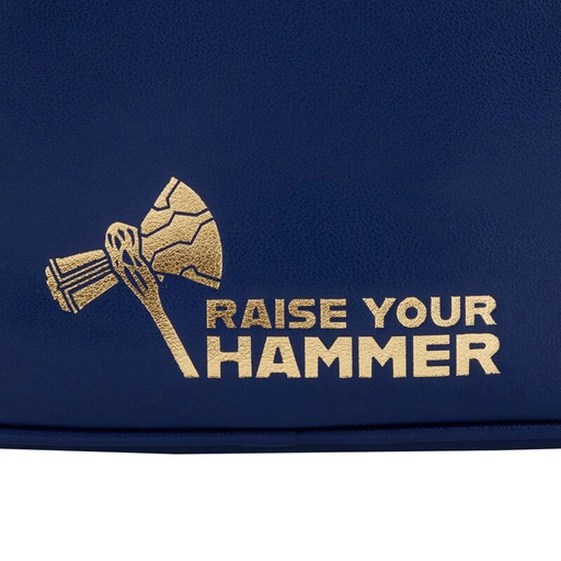 Channel the power of Thor and charge through your day with this Marvel Thor: Love and Thunder Glow in the Dark Cosplay Mini Backpack. Carry this backpack with you to keep your possessions safe, wherever your travels may take you. On the front, Thor’s armor sizzles and glows with lightning. On the back, the message “Raise your hammer,” in gold, recalls the challenge of being worthy of the power of Thor to wield the mighty hammer.